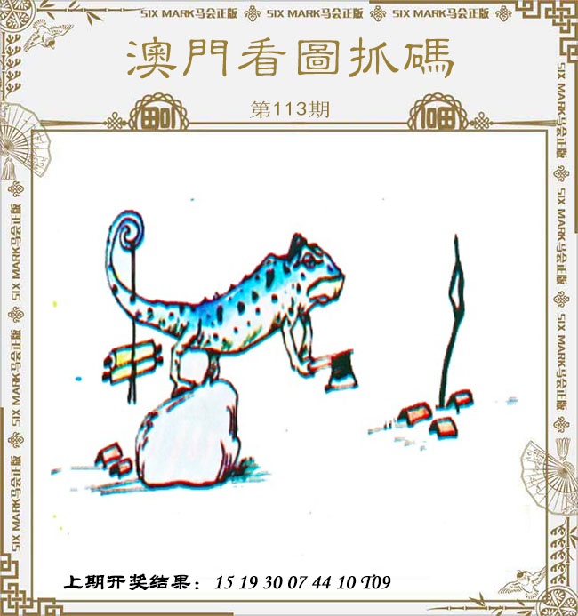 【抓码图】113期:图中一只蜥蜴拿着把斧头站在一石头上,尾巴挂着画卷,解龙蛇羊猴猪鼠。
